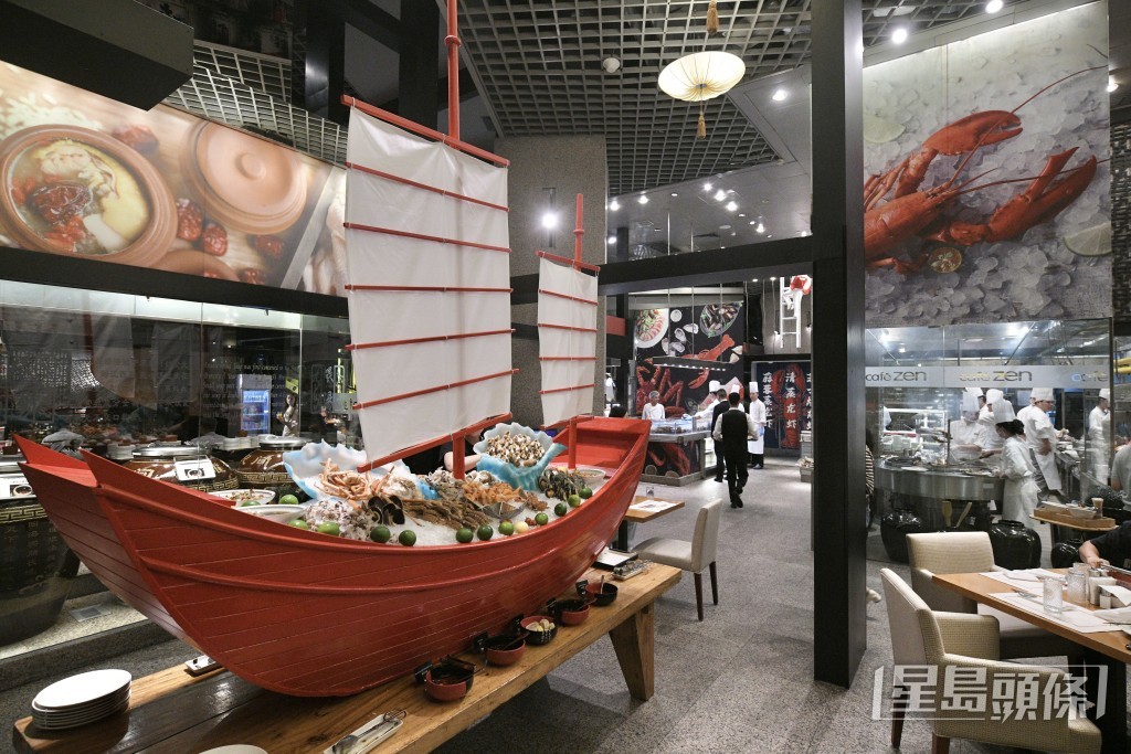 ▲特别设有巨型的红色海鲜船,包括蟹脚、冻蟹、冻虾、青口、田螺等十数款冷盘海鲜