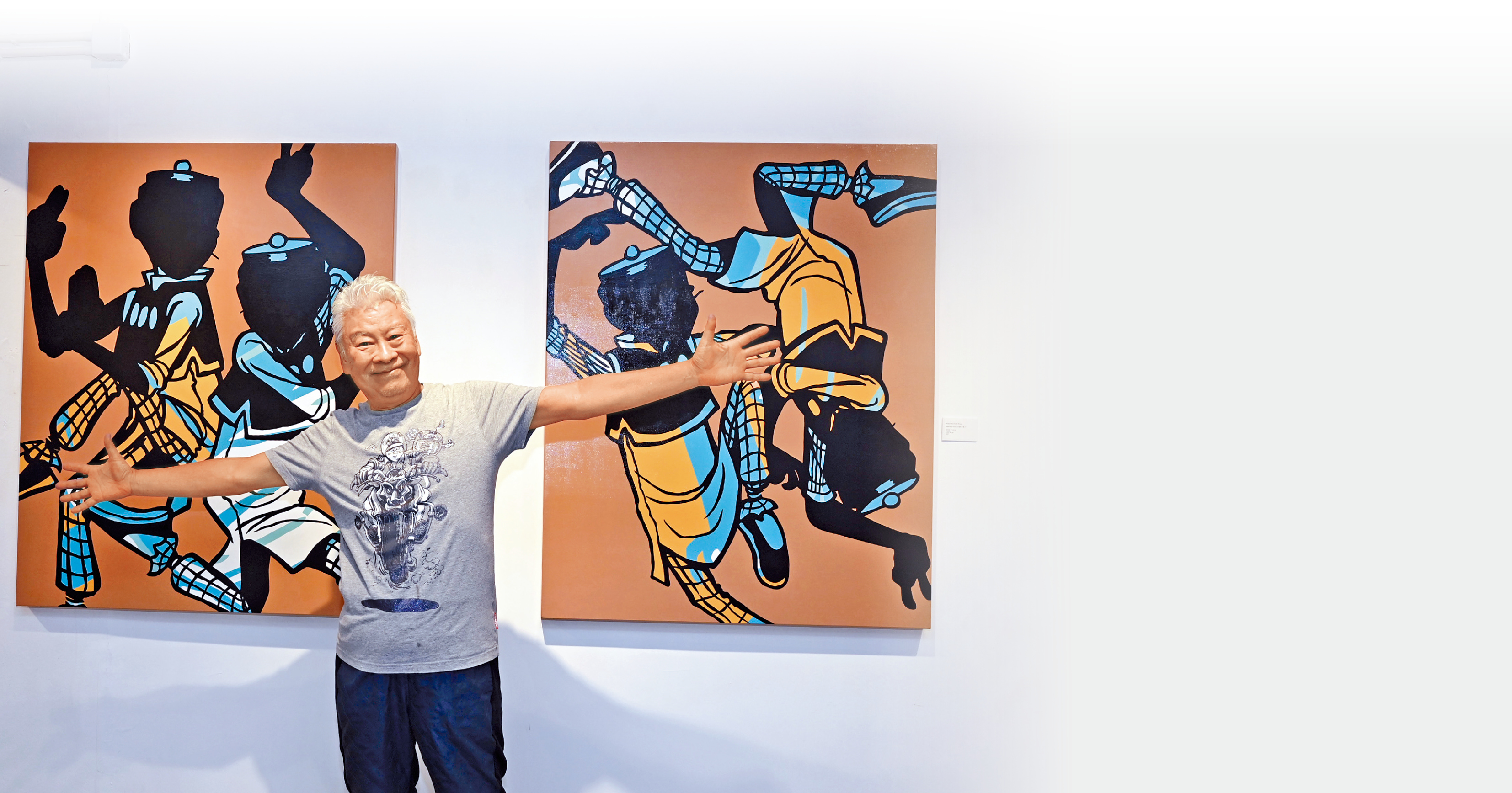 《老夫子》在上世纪六十年代于《星岛晚报》崭露头角后,刊出至今,凭借幽默贴地的小人物故事,风靡华人世界大半世纪。从父亲“老王泽”王家禧手上接棒的王泽,现正于Lucie Chang Fine Arts举办《老夫子. 花前月下》个展,展出《老夫子》四格、六格漫画的经典手稿外,亦有多幅别具艺术感的压克力画。王泽直言希望带领《老夫子》与时并进,跳出漫画框框,以艺术形式在现今世代和文化中继续流传。