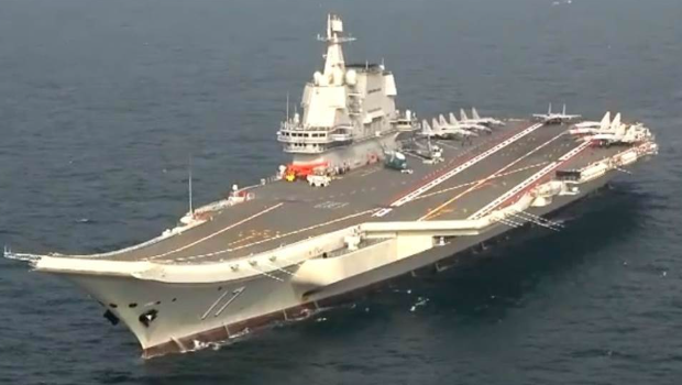 解放军山东号航母完成12天台湾东南海域“海、空远海长航”训练后,传出8日晚间进入台湾海峡。台湾防务部门9日表示,解放军山东号航舰编队自昨下午起,沿台海中线以西由南向北航行,上午8时许,经北部海域持续朝北航行,沿着台湾海峡“中线”以西,由南向北航行。台湾退役少将栗正杰认为,山东号从台湾海峡又绕上去,就是“警告台独,敲山震虎”的意味比较浓厚。