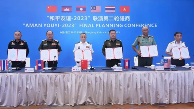 据中国国防部12日消息,11月中下旬,中国将与柬埔寨、老挝、马来西亚、泰国、越南军队,在广东湛江举行“和平友谊-2023”多国联合演习。这是首次在中国举行该系列演习,以“联合反恐与维护海上安全军事行动”为课题。