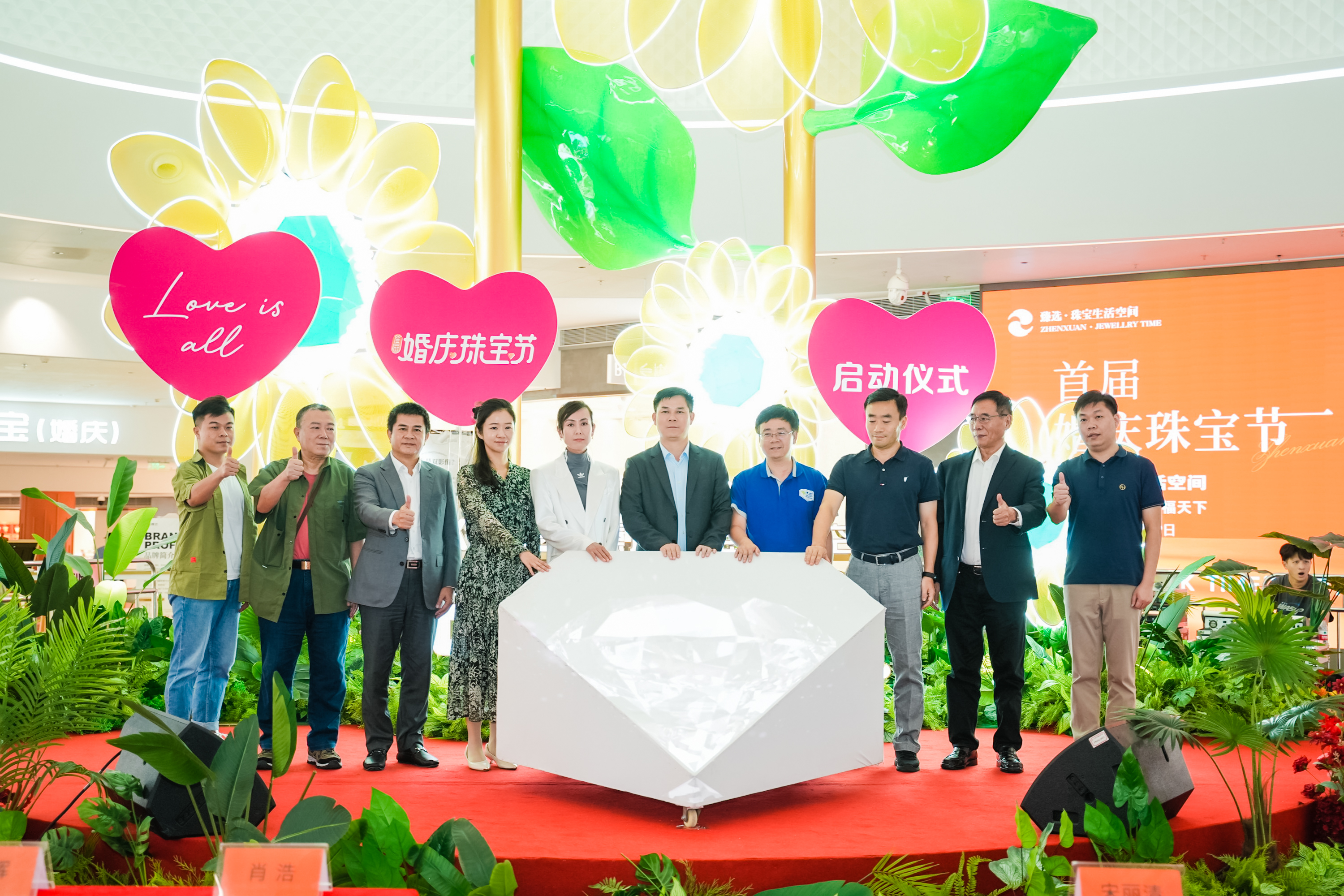 携手深圳市黄金珠宝首饰行业协会、深圳市婚庆行业协会、深圳市珍珠行业协会等权威行业专业机构;京基集团旗下瑞吉、海湾、洲际三大高端酒店品牌;幸福天下、铂爵旅拍、王子视觉、鲜檬集团、玫瑰庄园等全国婚庆头部行业企业,汇聚数万件精美璀璨的珠宝,集萃全城的优惠福利,打造了一场高规格、高品质的视觉及文化盛宴。在启动仪式上,独属于中国的浪漫与爱——婚纱珠宝风尚秀带来华美开场,东方品质感一览无余。随后到场嘉宾领导共同启动珠宝装置,宣布首届“婚庆珠宝节”正式开启。