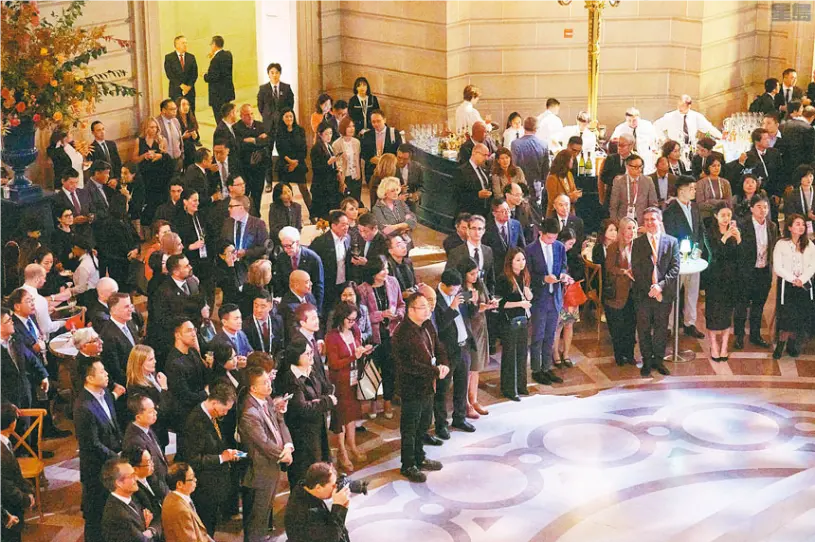 为期一周的亚太经济合作组织(APEC)在进行中,旧金山以最大的诚意招待各方来宾。12日晚市长布里德与APEC工商咨询理事会(ABAC)主席、华美银行(East West Bank)董事长兼执行长吴建民(Dominic Ng)在市府大楼举行欢迎招待会,招待参与大会的百余名企业执行长们和各界官员。