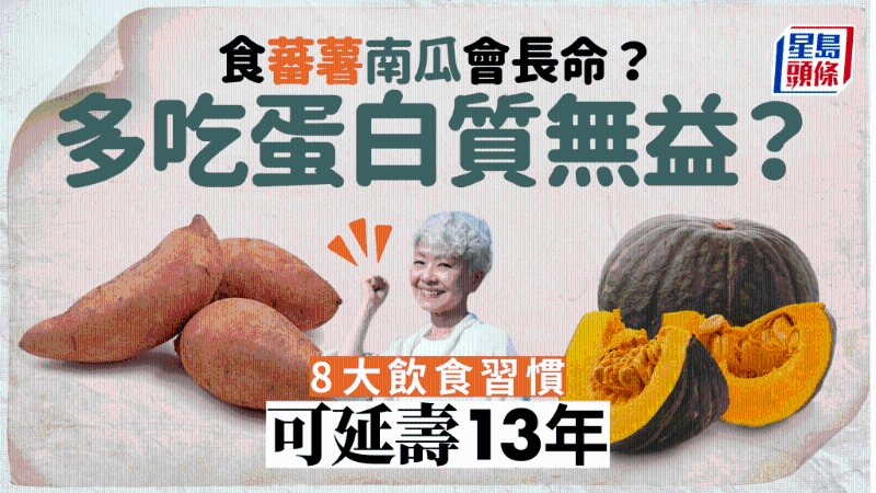 怎样的饮食习惯才能令人长寿?有美国研究指出,如果可透过饮食摄取适当的营养,避开对身体有害的食物,就能够帮助延缓身体老化及预防疾病,从而延长寿命。研究人员总结出8大有益健康的饮食习惯,包括吃番薯、南瓜等,最多可延长寿命达13年。