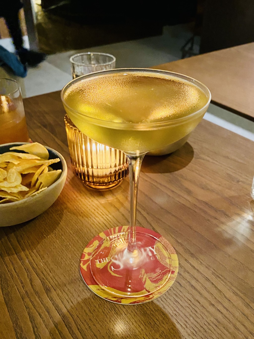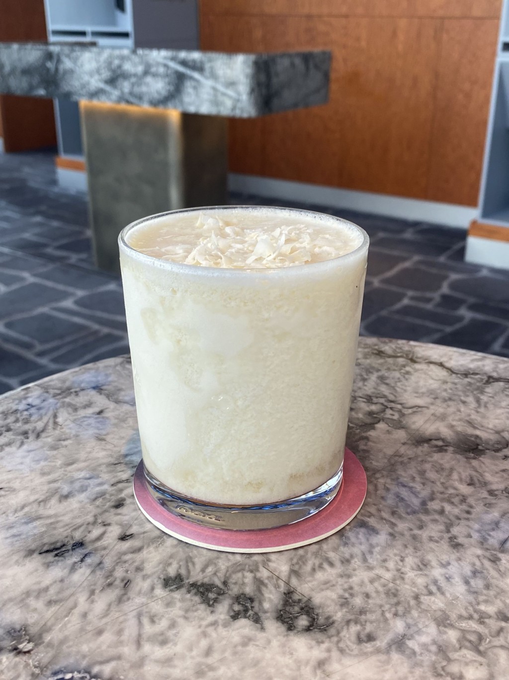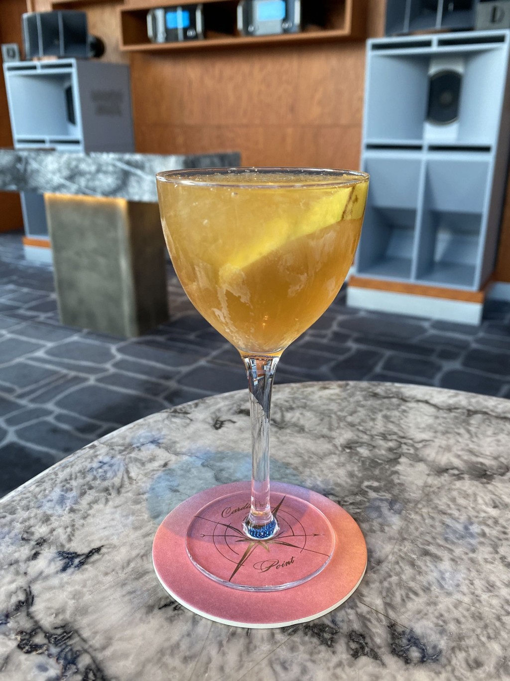 位于置地广场的Cardinal Point,坐拥无敌海景及天际阳台,下午5时已近客满。调酒Boujie Banana($150)以爱尔兰威士忌配合Kakigori日式刨冰,再以味道复杂的香料Allspice多香果提味,配以香蕉点缀。至于Koji Kolada($150)则以Havana Club Especial冧酒及马爹利VSOP为基酒,配合菠萝甜酒,再以椰子雪酪及Sparkling Nigori气泡浊酒提升味道口感。