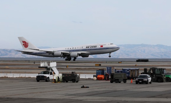 ▲习近平乘坐专机抵达旧金山国际机场时,受到美国加利福尼亚州州长纽森、财政部长耶伦等美方代表热情迎接。新华社