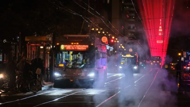 旧金山市场街从11月13号晚上起点亮激光灯带,庆祝亚太经合组织(APEC)峰会召开。这条长达3英里的激光彩虹从轮渡大楼出发,照亮市场街上空。这个醒目的激光装置名为“照亮旧金山”(Illuminate SF),由同名的激光装置艺术组织和非牟利基金会Civic Joy Fund共同打造,从13日至17号,在每天日落后至第二天日出前点亮。主办方称装置耗资15万美元,仍在众筹经费,旨在展现旧金山与21个APEC经济体的团结合作。