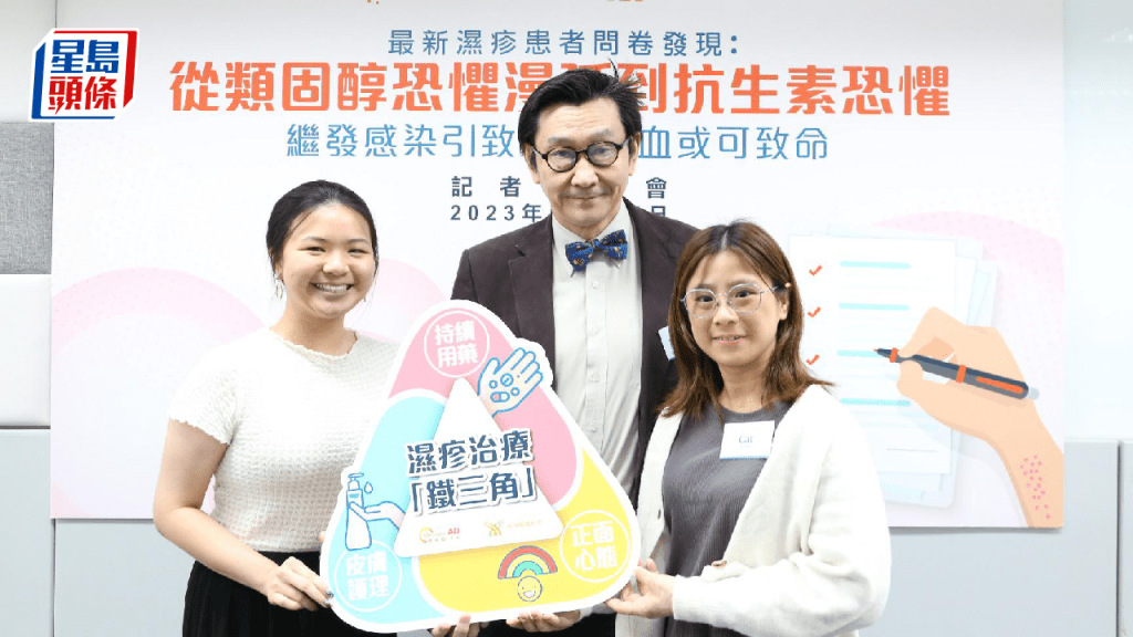 韩锦伦教授指,湿疹虽不能断尾,但患者应抱持正面心态,学习与湿疹共存。谨记治疗湿疹的关键“铁三角”——持续用药、皮肤护理及正面心态,切勿盲目相信错误的治疗方法,必须接受正当治疗,逾9成患者的湿疹可有效控制的。