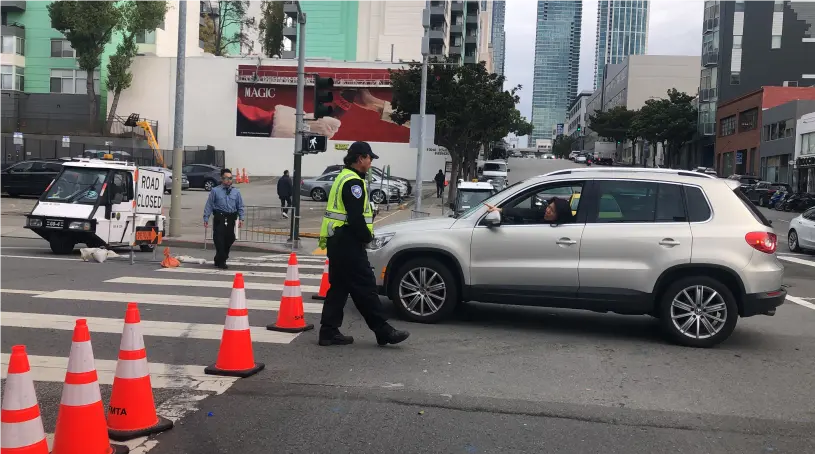 ▲拜登总统下榻旧金山诺布山Fairmont酒店前的Sacremento街已经被封禁。