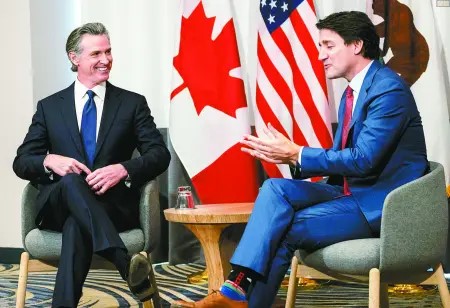 ▲加州州长纽森与加拿大总理特鲁多进行私人会面。美联社