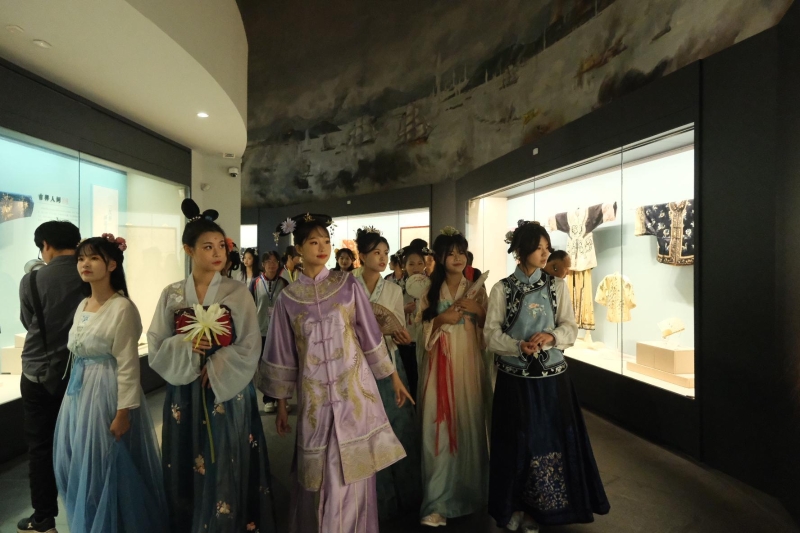 On the morning of November 14, the "Canton Embroidery and Su Embroidery Exhibition since the Ming and Qing Dynasties" opened in Dongguan. At the opening ceremony, guests watched a wonderful performance featuring the content of the exhibition. Costume designers used the exhibit patterns as inspiration to design and produce traditional costumes, adapting ancient embroidery techniques to the trend of the times. Students from the Textile and Fashion School, dressed in fancy clothes, performed at the event. The exquisite embroidery patterns of thousands of years of history traveled through time and space, blooming with new vitality and vigor in inheritance and development.