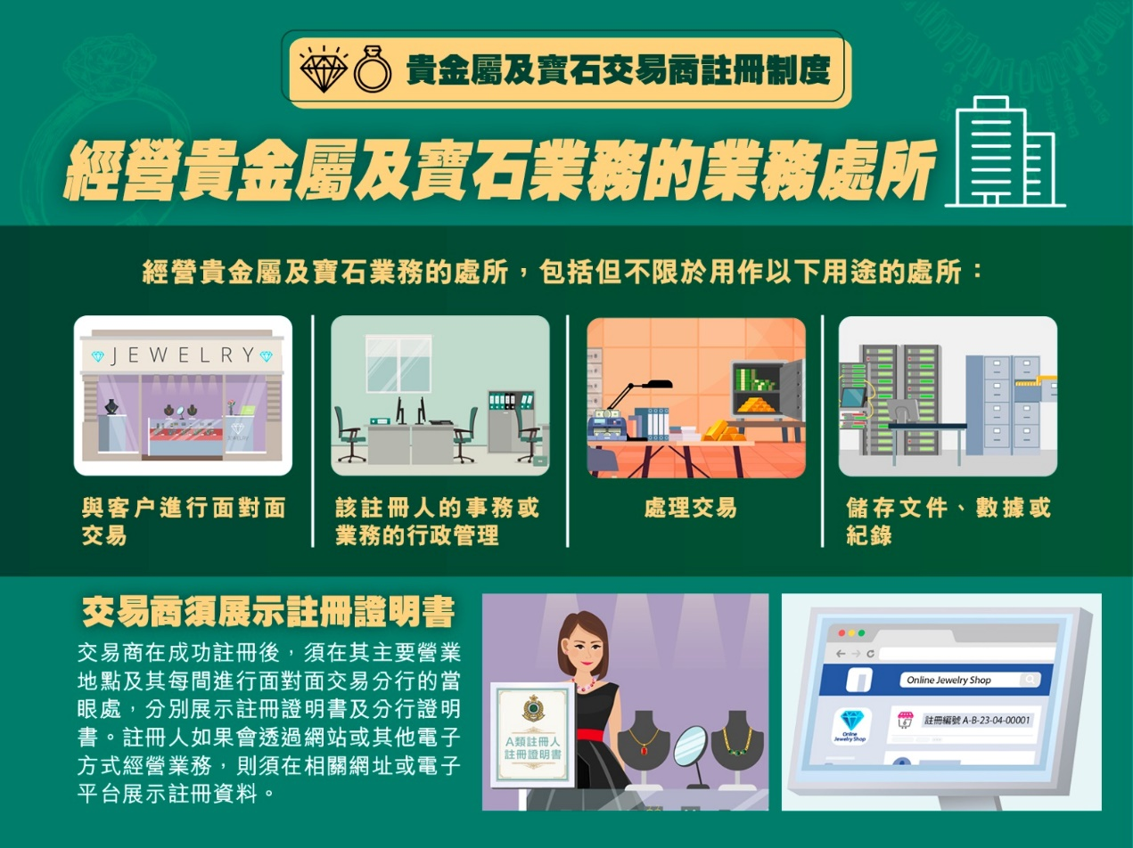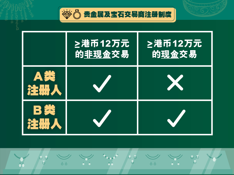 贵金属及宝石交易商注册制度已于2023年4月1日起实施,在制度实施之前一直营运的贵金属及宝石交易商须于今年内向香港海关申请注册,以进行总额为12万或以上港元的交易,并须适当履行打击洗钱及恐怖分子资金筹集的法定责任。