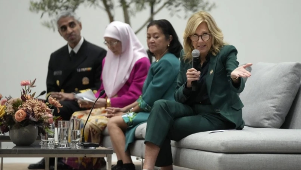 美国第一夫人吉尔拜登周五(17日)与APEC与会领袖的夫人前往科企苹果位于南湾古柏蒂奴(Cupertino)的总部,出席一场精神健康问题相关讨论。入主白宫后仍继续执教的吉尔坦言,太多美国人受精神健康困扰,尤其疫情影响不少学生情绪,需坦然面对才可解决问题。