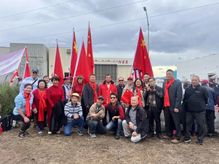 ▲大批侨胞在旧金山国际机场外的海傍挥舞五星红旗,准备欢送习近平主席。