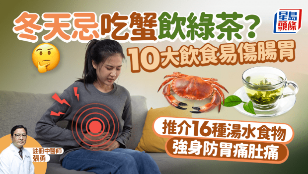 冬季要预防肠胃疾病,首要健脾胃,以及不宜进食有碍肠胃、损耗脾脏的食物,例如不宜饮用绿茶、不适宜进食螃蟹等,当中可削弱胃肠、脾脏的饮食,包括以下7种食物及3种中药材。
