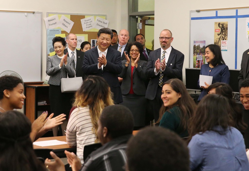 ▲2015年习近平和夫人彭丽媛一起参观了林肯中学。