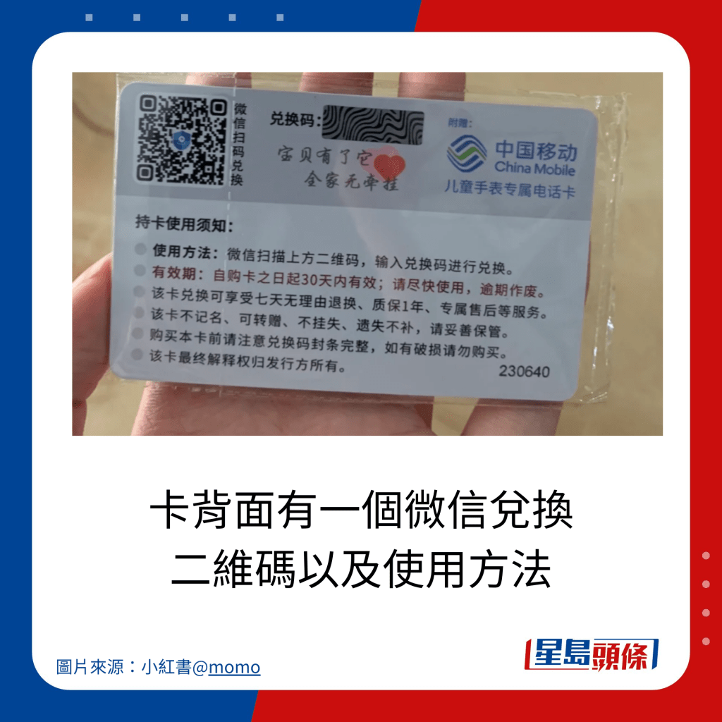 街边拾获中国移动 ¥300“电话手表兑换卡”