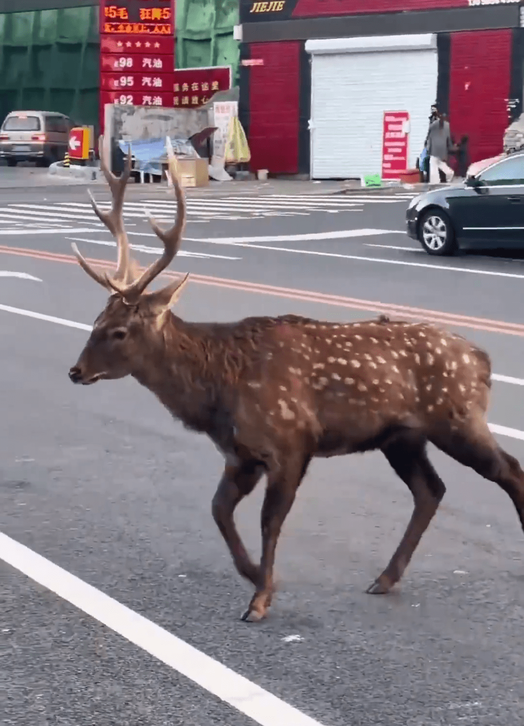 目击者高先生表示,当时是下班时候,他发现有一只野生的鹿在马路上走,“因为大连经常看得到野生小鹿,大家对小鹿也比较熟悉,所以会有人去喂饲,它也没有攻击人,很正常,最后吃饱了就跑上附近的山。”高先生称。