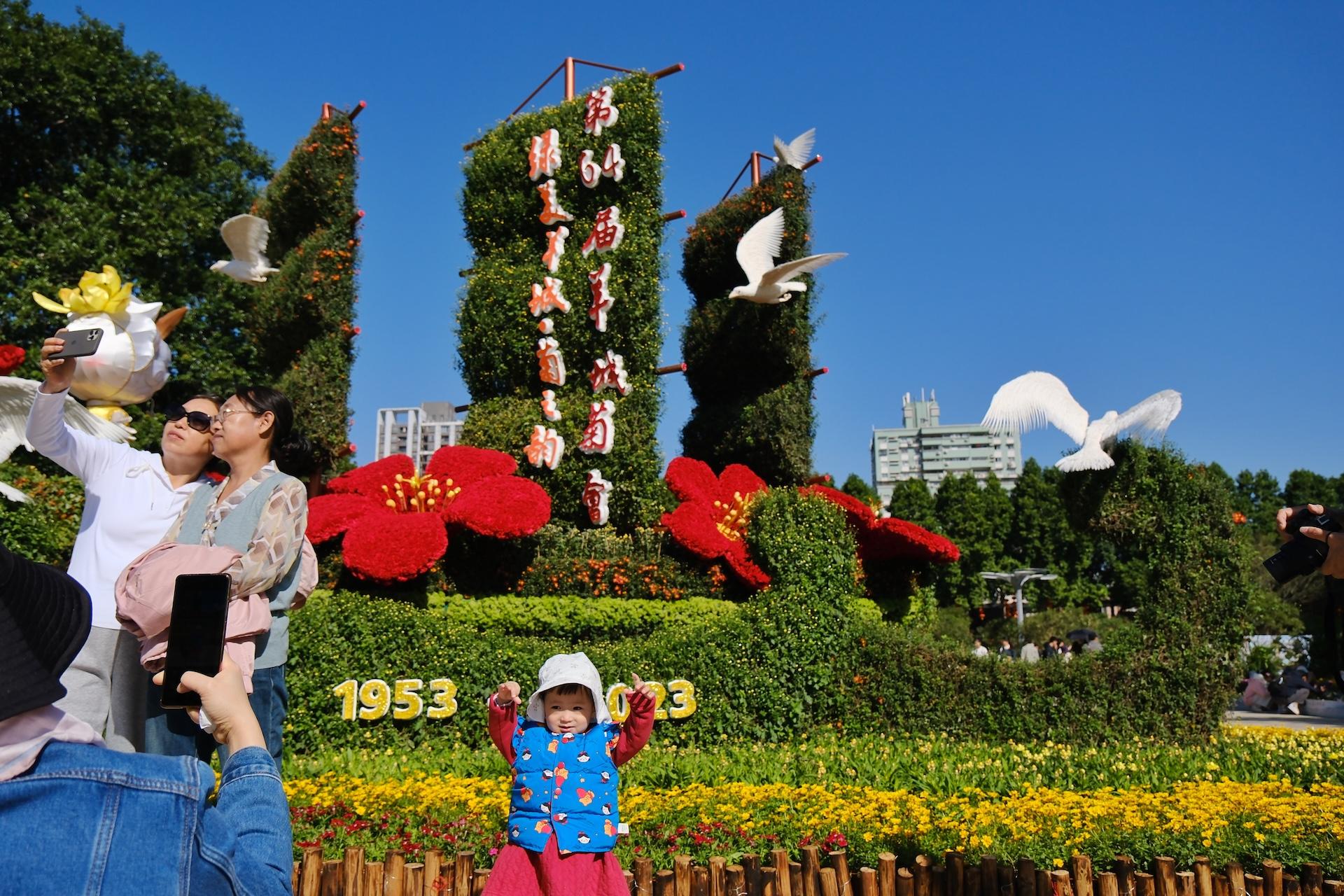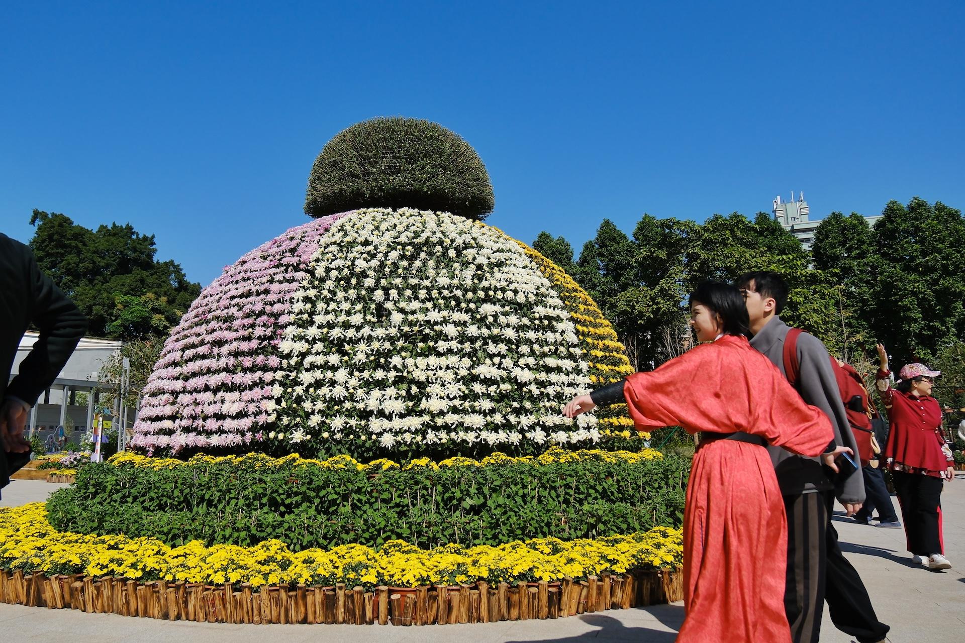 On November 18, the 64th Chrysanthemum Exhibition was launched in Guangzhou Cultural Park. It is the largest, oldest, and longest professional chrysanthemum exhibition in Guangzhou. This year's exhibition has many highlights: one is "big", the "Double Colored Chrysanthemum" is the largest in this exhibition, consisting of nearly 6,000 flowers. The second one is "high", the first time to display tall varieties of chrysanthemums, up to 2 meters. And the third one is "large", the scale of the current exhibition is the largest in recent years.