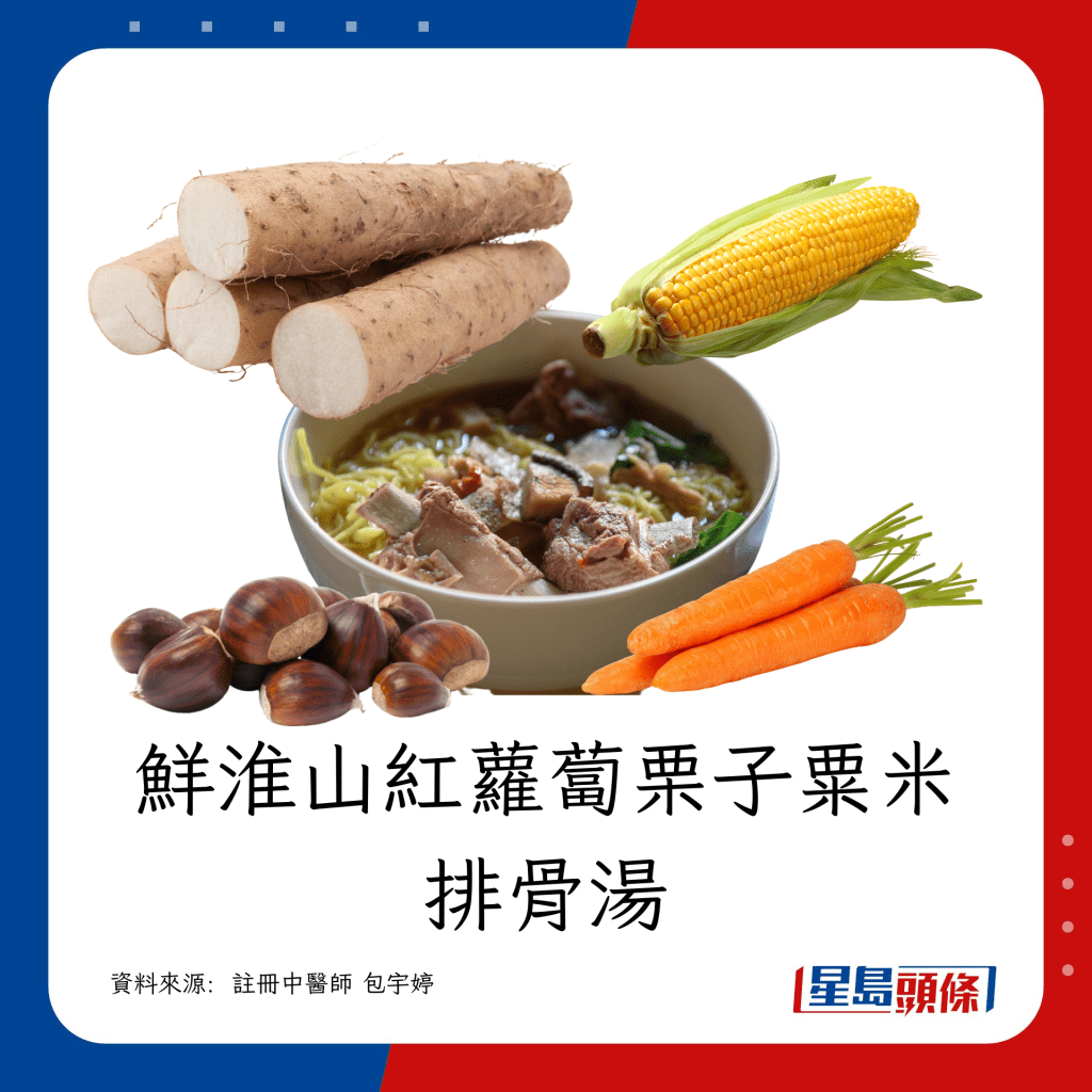 小雪可以喝什么汤水养生? 注册中医师包宇婷恒推介4款养生汤水,包括党参杜仲淮山瘦肉汤、鲜淮山红萝卜栗子粟米排骨汤、玫瑰茉莉佛手花茶饮、桂皮甘草牛肉汤。