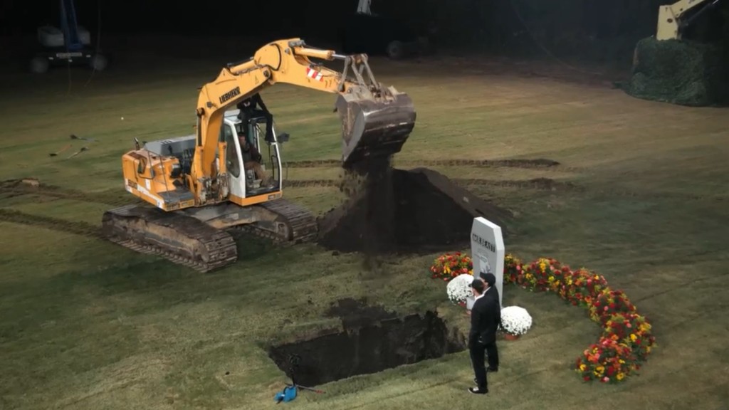 ▲挖土机将9吨重的泥土倾倒在棺材上。 Youtube