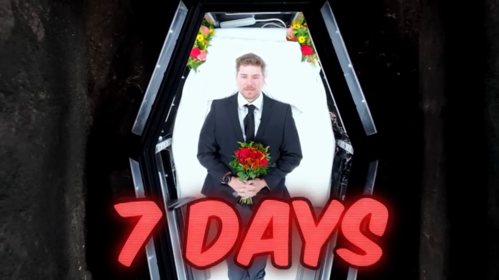 ▲MrBeast挑战“睡棺材”活埋7天。 Youtube