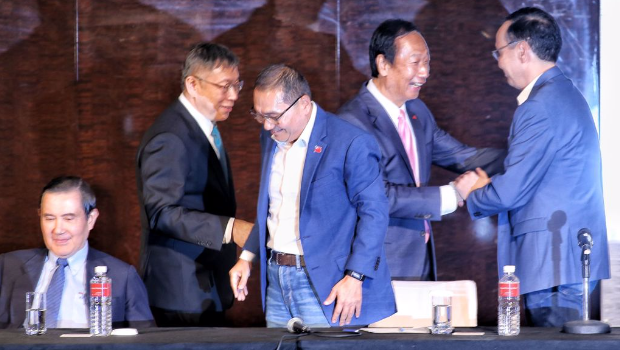 台湾在野阵营整合期限进入倒数,国民党2024参选人侯友宜、民众党2024参选人柯文哲、鸿海创办人郭台铭、前台湾领导人马英九及国民党主席朱立伦,5人今(23日)傍晚在君悦饭店举行记者会,中场休息后,柯文哲先开呛“总统”要能面对困难,“不是需要一堆保姆”。侯友宜则反击说,人要守诚信,签的协议要遵守。但由于会场仅借到晚上19时,6时30分就开始清场,会谈未有结果就宣布结束。