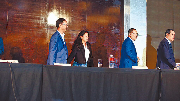 ▲蓝白合会谈23日不欢而散,国民党2024参选人侯友宜(左二)、前领导人马英九(右)、国民党主席朱立伦(左)起身离开会场。中时网