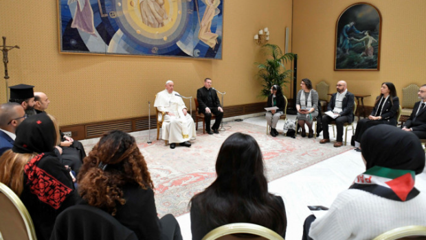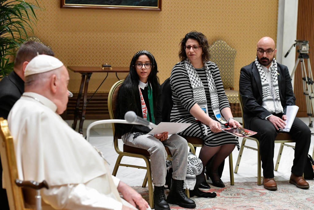 ▲教宗和加沙巴勒斯坦居民家属见面。路透社