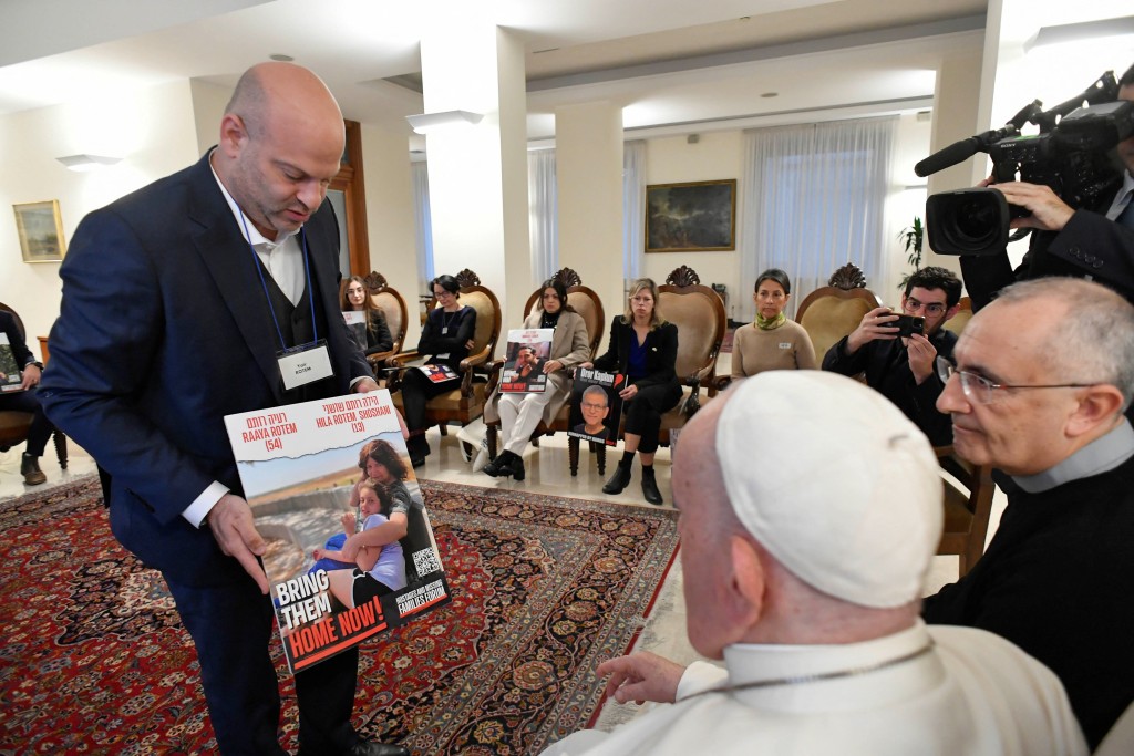 ▲教宗和以色列人质家属见面。 路透社