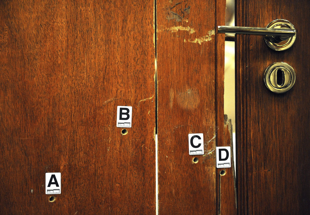 ▲皮斯托留斯(Oscar Pistorius)向上锁的浴室门开了4枪,射死门后的女友斯藤坎普(Reeva Steenkamp)。 美联社