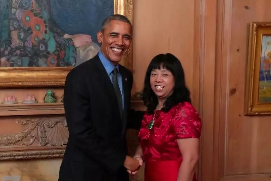 ▲吴偑慈曾发图炫耀家婆崔丽杰(右)与美国总统奥巴马见面。
