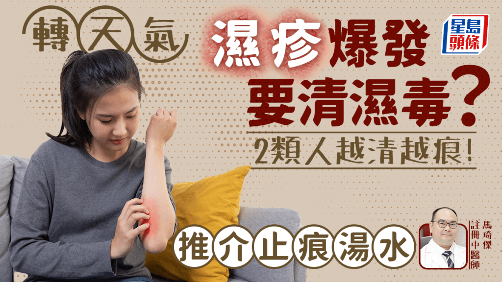 转季天气干燥,忽冷忽热,湿疹易发作。患有湿疹就一定要清湿毒?注册中医师马琦杰表示,湿疹可分为6大类型,治疗方法也不同,有2类湿疹患者不宜清湿毒。若用错方法,就如同火上加油,痕痒红肿情况越发严重。另他推介纾缓湿疹的汤水食疗,有助止痒。