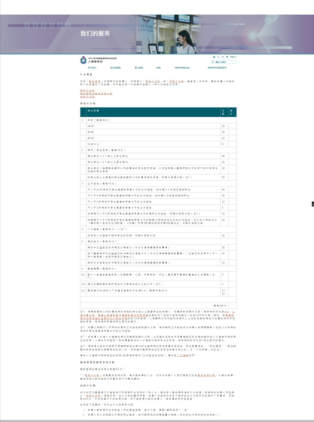 “成就计分制”则设有一个得分范畴。此计分制的要求极高。申请人如被视作符合下段所述此计分制所列的其中一项要求,可获取2 4 5分,不符合者则不会获得分数,而不能取得分数的申请人,其申请会即时被拒絶。