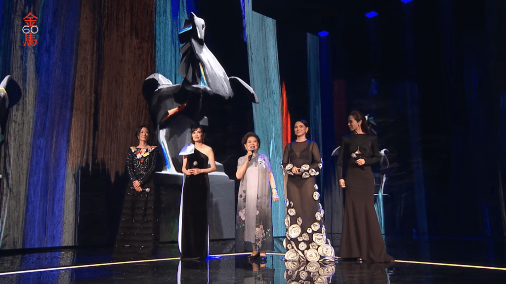 ▲五位金马影后(左起)桂纶美、陈湘琪、陈淑芳、李心洁、谢盈萱昨晚颁发今届金马奖“最佳女主角”。