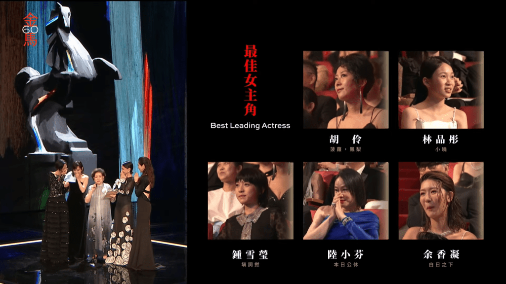 香港代表《白日之下》余香凝、《填词L》钟雪莹昨晚失落金马奖“最佳女主角”,奖项破天荒由年仅12岁的林品彤获得,成为金马奖60年来最年轻影后! 林品彤昨晚与《小晓》中的妈妈陈意涵与班主任刘俊谦齐齐现身庆功宴,抱着金马奖座,脸上满满笑容。 林品彤受访时说:“有说不完的谢谢,谢谢金马奖,然后谢谢评审对我的肯定。” 她在《小晓》中饰演患有过度活跃症的“小晓”一角备受肯定,她直说:“要疯狂爆炸,然后尖叫的那几场戏,因为跟我自己的个性真的差很多,然后小晓那种突然哭,突然丢东西然后突然尖叫那种,我觉得满困难的。”