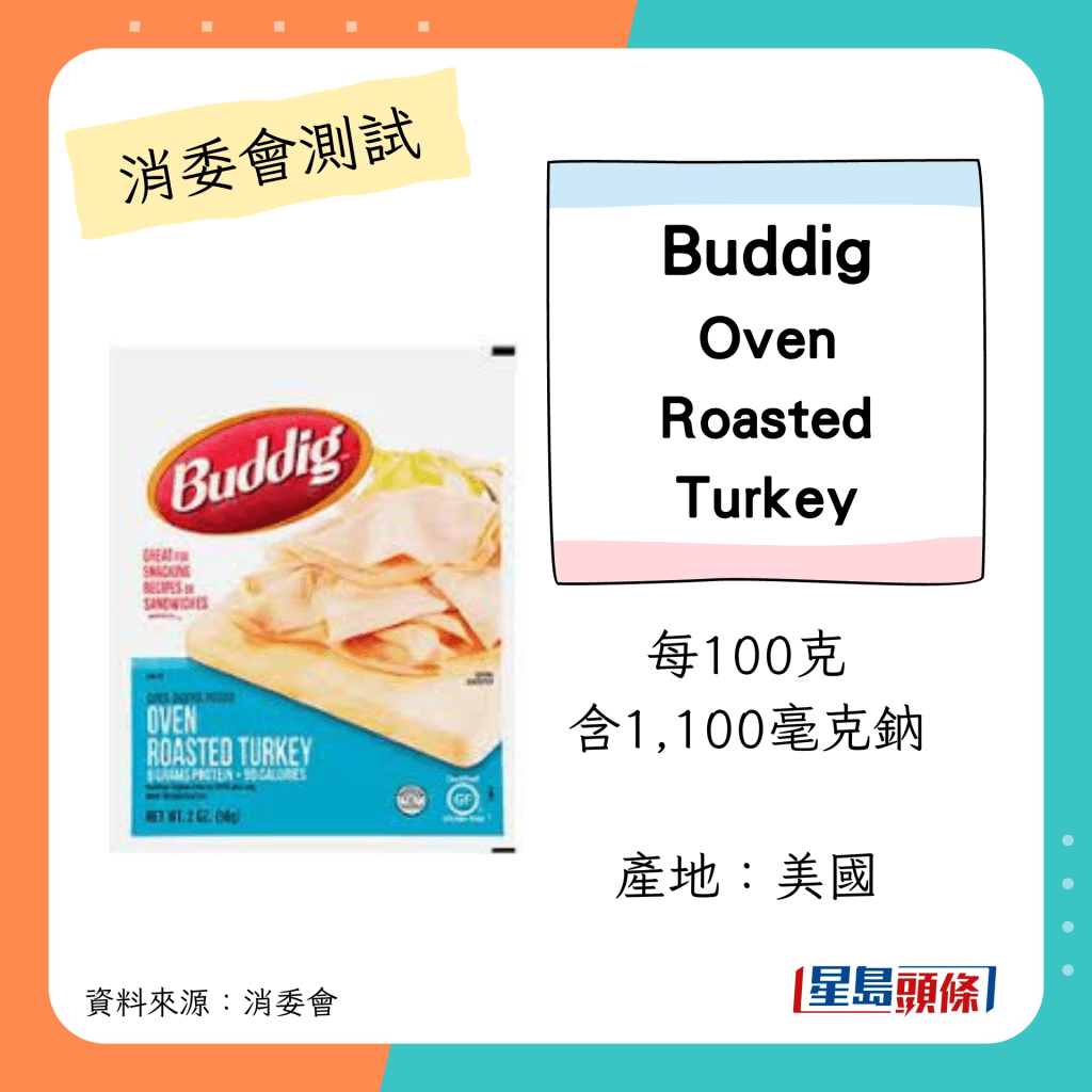 火鸡片钠含量最高:“Buddig”Oven Roasted Turkey(每100克含1,100毫克钠)