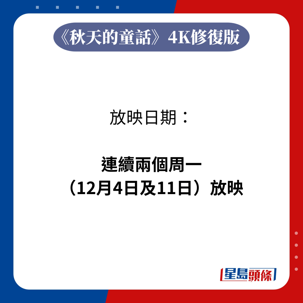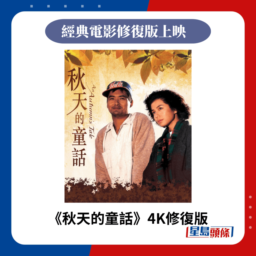香港电影业曾经出产过不少经典电影佳作,例如由周润发与钟楚红主演、于1987年上映的《秋天的童话》;还有已故巨星梅艳芳与张国荣主演的《胭脂扣》等,相信即使未看过这些电影,亦对它们的名字绝不陌生。近日,新光戏院就宣布即将带来经典电影4K修复版限时上映,即睇放映详情!