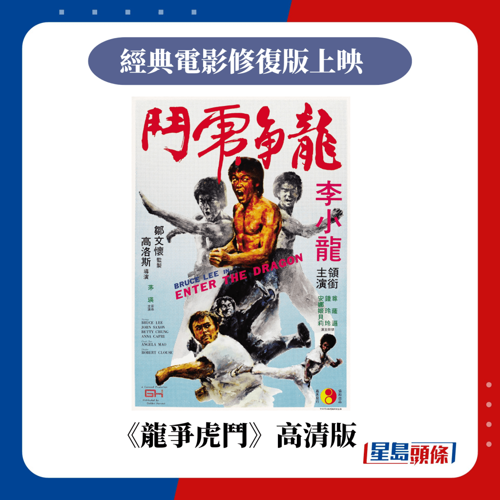 ▲《龙争虎斗》(英语:Enter the Dragon), 是李小龙领导主演的第四部武打电影。