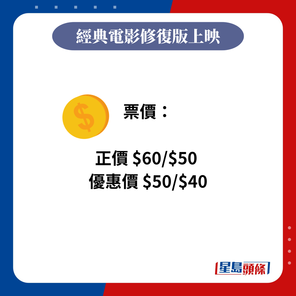 ▲票价: 正价 $60/$50 优惠价 $50/$40