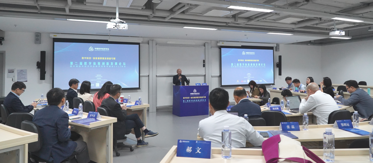 这是由中国技术经济学会指导、中国技术经济学会数字体育专业委员会主办的“第二届数字体育创新发展论坛”。来自香港中文大学(深圳)、中国联通文体旅、法国里昂商学院、中国移动咪咕、科大讯飞、好家庭健康科技、乐动天下等全国数字体育相关领域的专家、学者和业界人士,围绕“数字科技-体育高质量发展新引擎”主题,共同探讨数字科技如何成为体育产业发展的新引擎,并结合各自领域的数字体育创新成果,为进一步推动促进我国数字体育创新发展分别建言献策。