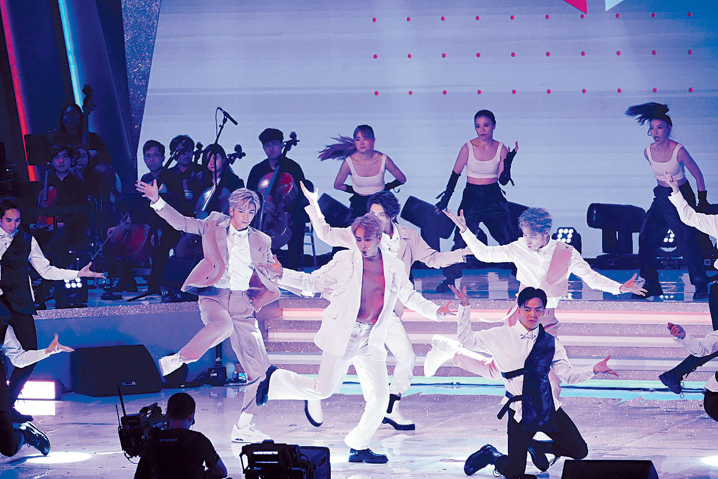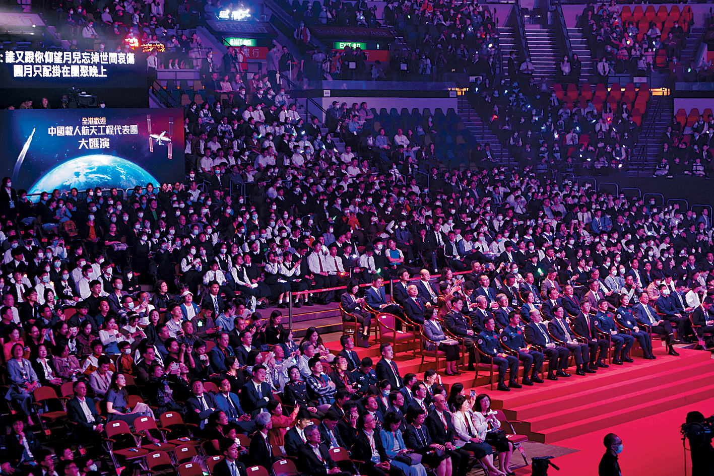 ▲代表团昨日出席全港欢迎中国载人航天工程代表团大汇演,特首李家超(右五)及中联办主任郑雁雄(右四)主礼。