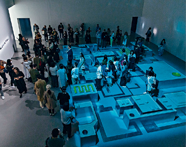焦点展品方面,北京艺术家王卫便以1道由双面马赛克瓷砖构建的高墙,将北美馆入口的回廊空间分隔成为2个区域,并运用镜像手法,让作品与2面落地窗户互相呼应。至于香港艺术家唐纳天则以芯片及电路板作为灵感,创作大型“沙盒”装置作品,混淆大家对尺度的感受,以及重新认识界限与扩缩性等议题。台湾艺术家赖志盛便利用现场的既有物件,将北美馆二楼205展厅公厕前的廊道,转化为等候室,重新配置参观者与周围环境的关系。