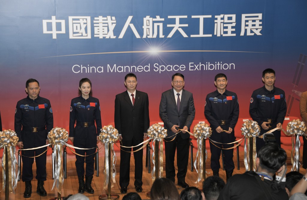 中国载人航天工程代表团开启第3日访港行程,今日(30日)上午出席香港科学馆“中国载人航天工程展”开幕礼,展览从明日(1日)起至明年二月中在香港科学馆和香港历史博物馆同步展出。政务司司长陈国基、康文署署长刘明光、文旅局局长杨润雄及代表团团长林西强、太空人刘伯明、王亚平、陈冬及张陆等为开幕礼剪彩。