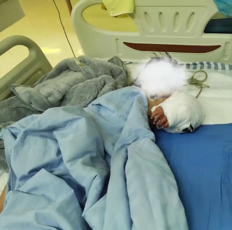 南昌市骨科医院手外科足踝外科科主任张先达向媒体表示,医院接受到张童时,距离其受袭已逾2小时,其左手从肘部撕裂造成撕脱伤,上面还有牙印。