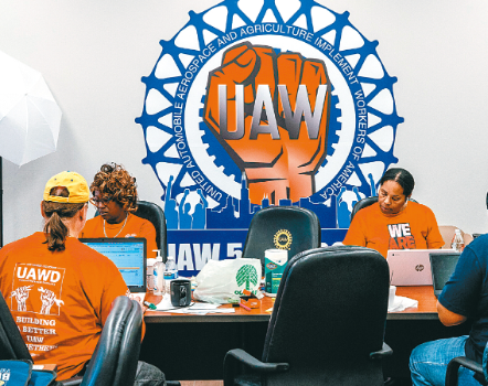 ▲汽车工人工会宣布推出大规模行动,推动13家车厂的汽车工人加入该工会,以壮大声势争取福利。 纽约时报图片
