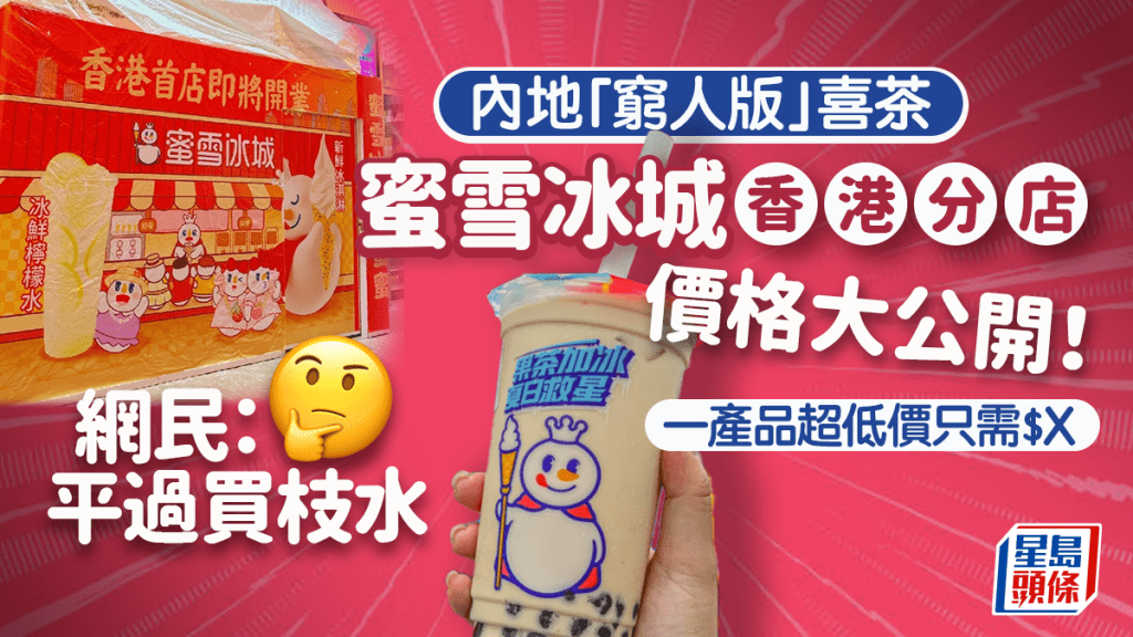 近年内地茶饮店品牌如喜茶、奈雪的茶等都深受港人欢迎,不少商家亦看准商机,纷纷涌到香港开设分店。 不过,要在众多手摇饮品突围而出,成为脍炙人口的品牌绝对不是容易的事。 早前爆红的”蜜雪冰城”就以超高性价比的特色,成功俘虏一众内地巿民,店铺门外络绎不绝。 近日更传出蜜雪冰城在香港开设首间分店的消息,引起一众网民期待。