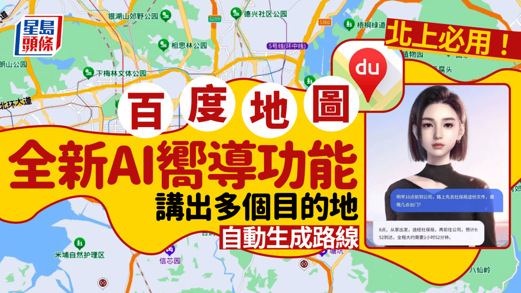 市面上有好多不同地图导航的手机应用程序,其中,百度地图近日就推出全新AI向导功能,靠着AI的帮助,用户只需要输入目的地就立即生成路线,非常方便! 大家日后有机会北上时,就可以下载试用最新功能了!