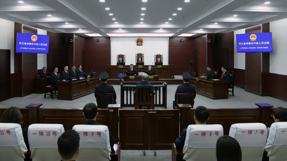 ▲河北省承德市中级人民法院一审公开开庭审理孙远良受贿案。央视