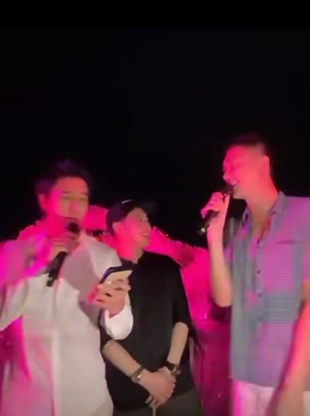 ▲王力宏、潘玮柏、信三人在after party上嗨唱潘玮柏的《不得不爱》。