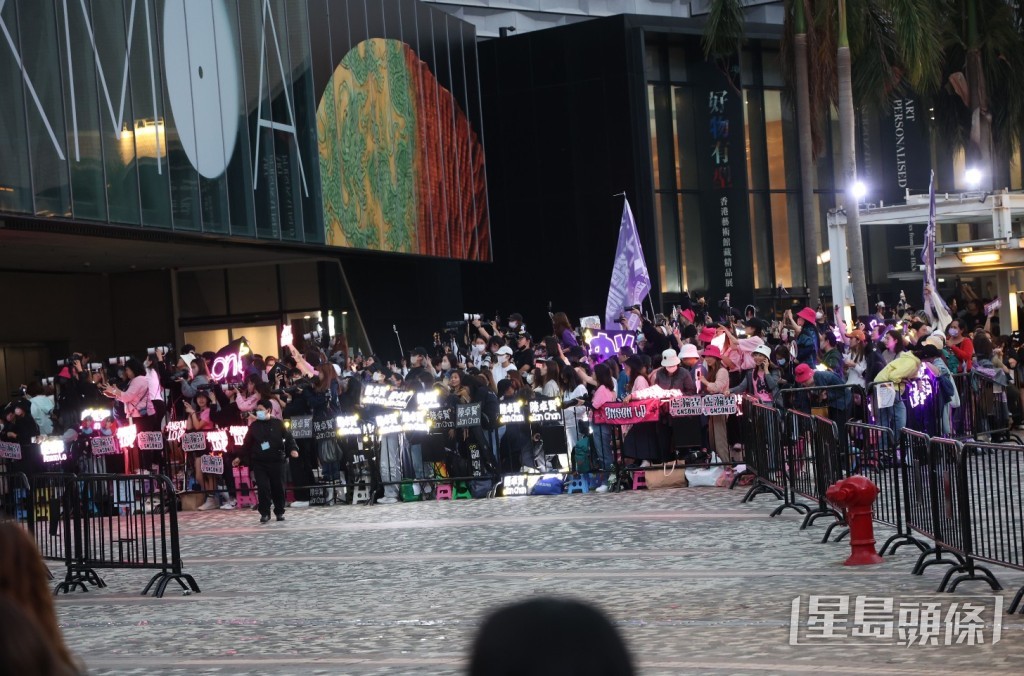 18:30 活动开始前,数百“镜粉”聚集太空馆与艺术馆之间空地,高举MIRROR成员卢瀚霆、吕爵安、陈卓贤的灯牌应援。警方更派员到场,严阵以待。
